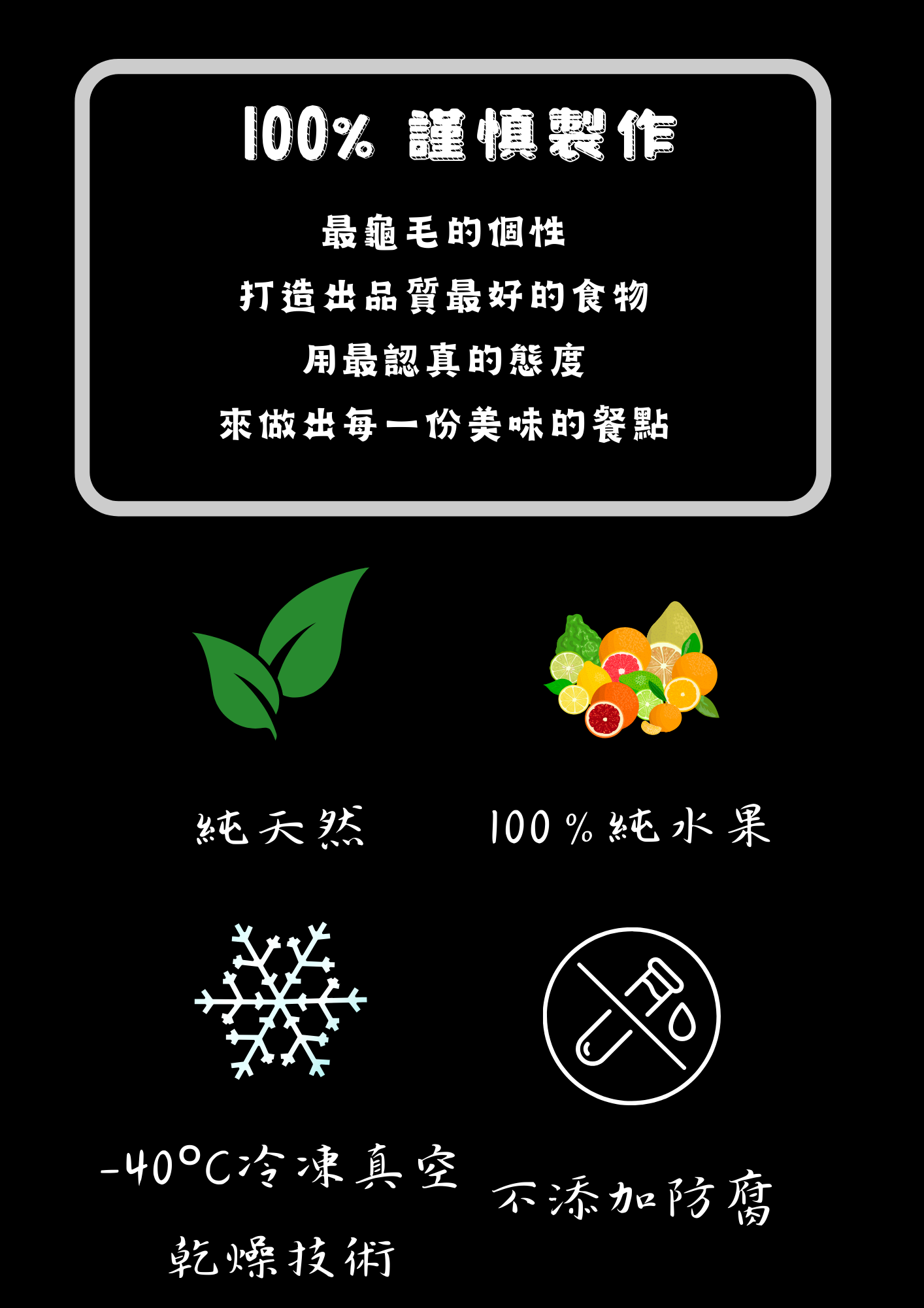 ✨人可食用的100%手做水果凍乾✨ 選用新鮮的水果進行冷凍乾燥, 將水果的鮮甜以及價值完美封存,無添加香料、色素、防腐劑,保留水果香氣與鮮甜可長時間常溫保存,隨時享用美味的水果。
